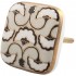 Mettez y un bouton! Ce bouton de meuble Art Déco de forme carrée arbore un motif abstrait, avec des couleurs crème, noire et blanche. Un liseré doré sur sa tranche lui apporte une touche chic pour un peps spécial dans vos rénovations de meubles et projets d'ameublement. Vos tiroirs, armoires et portes seront élégants et tendance avec ce joli bouton!